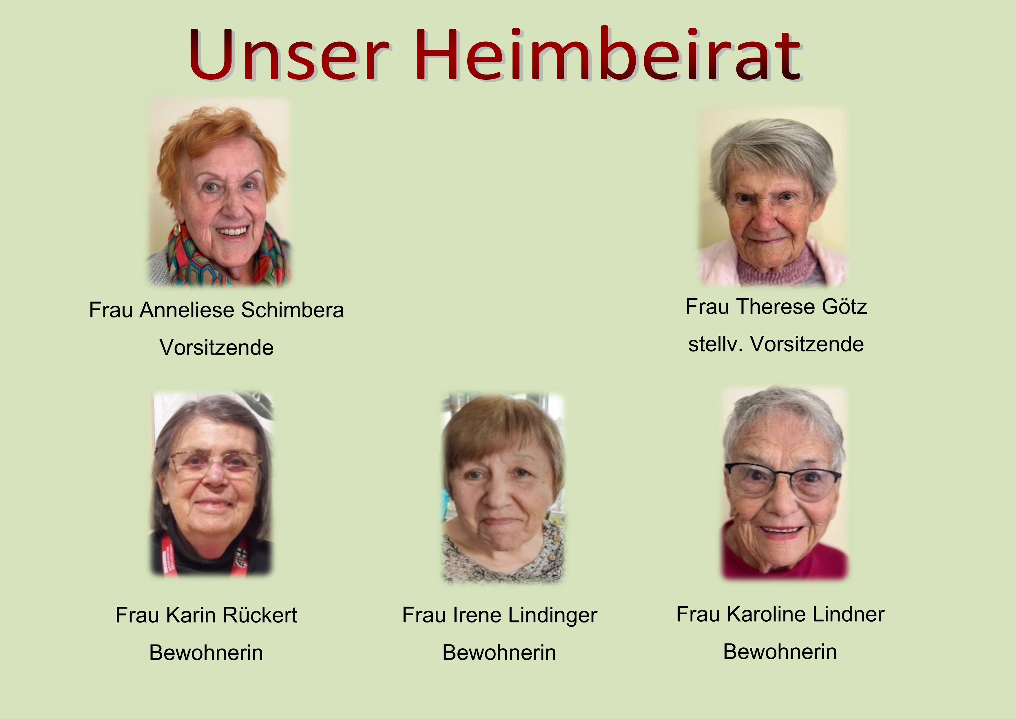 Der Heimbeirat unseres Hauses besteht aus fünf Mitgliedern und wird alle zwei Jahre neu gewählt.